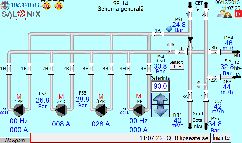 Для работы с задвижками был разработан шкаф TCV (Tabloul pentru Сomanda Vanelor), который позволяет управлять задвижками в ручном режиме и осуществляет индикацию их положения. Во время нормальной работы насосной станции в автоматическом режиме осуществляется поддержание заданного давления в теплосети. В случае аварийной ситуации задвижка автоматически закрывается, прекращая подачу теплоносителя.