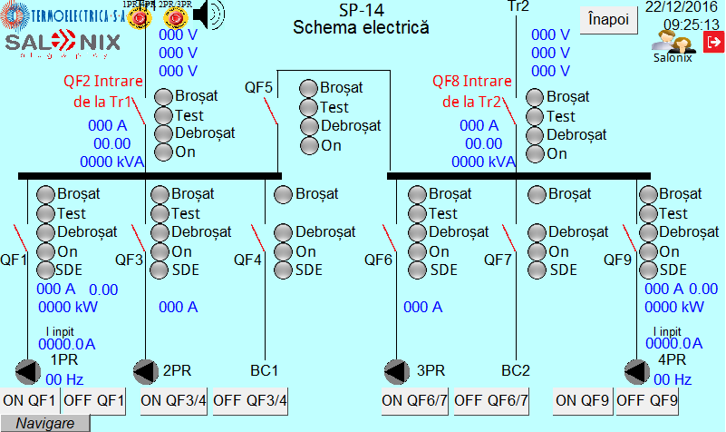Для обеспечения непрерывности электроснабжения оборудования и средств автоматизации насосной станции от двух независимых источников питания (10 кВ, 3 фазы, 50 Гц) разработан Шкафа TSP (Tabloul Servicii Proprii). В проекте предусмотрен автоматический или ручной переход на резервный источник питания.